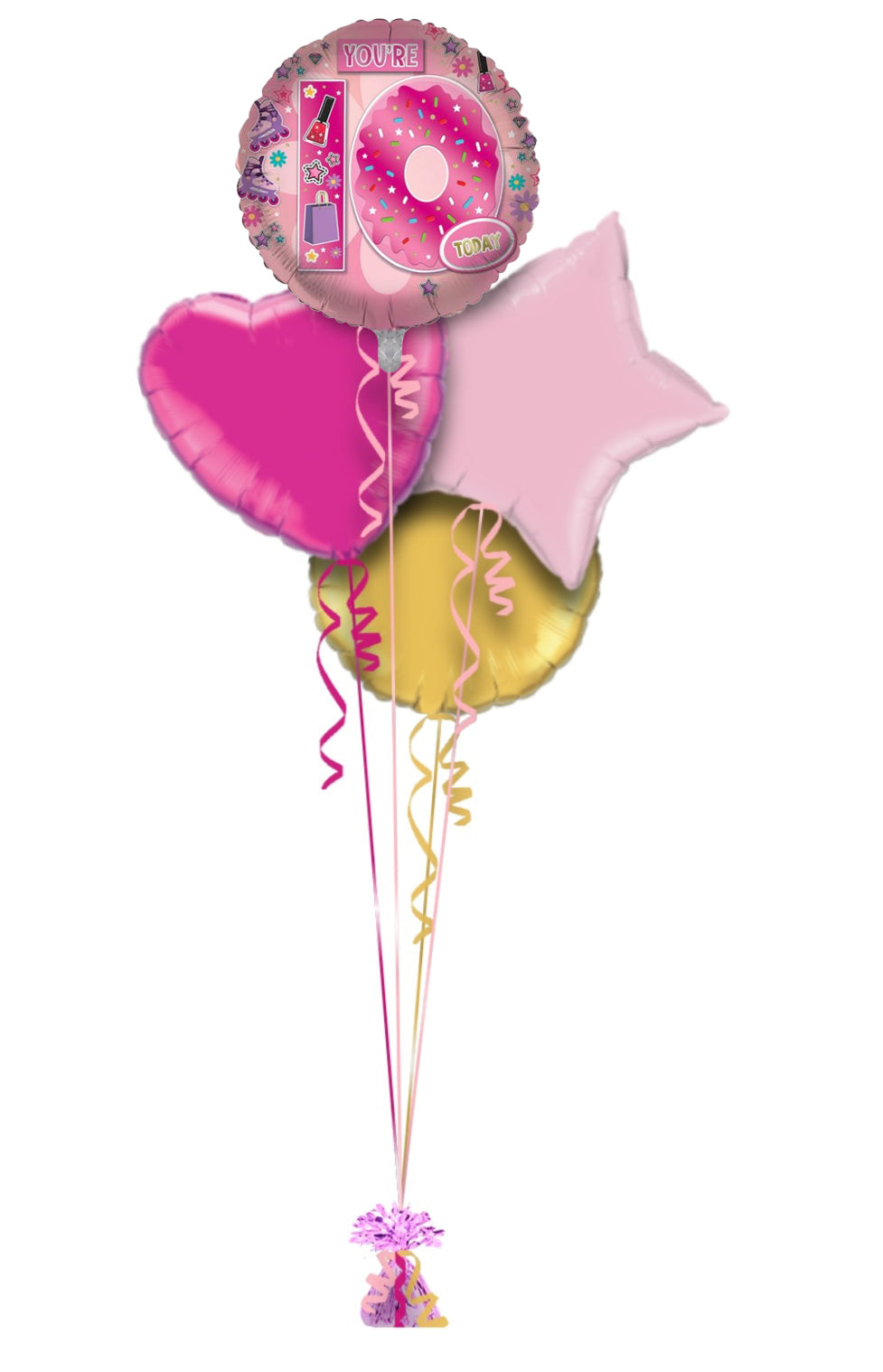 Single balloon or in bunch with extra colour balloons. All of our balloons are inflated with helium, tied down to a weight.