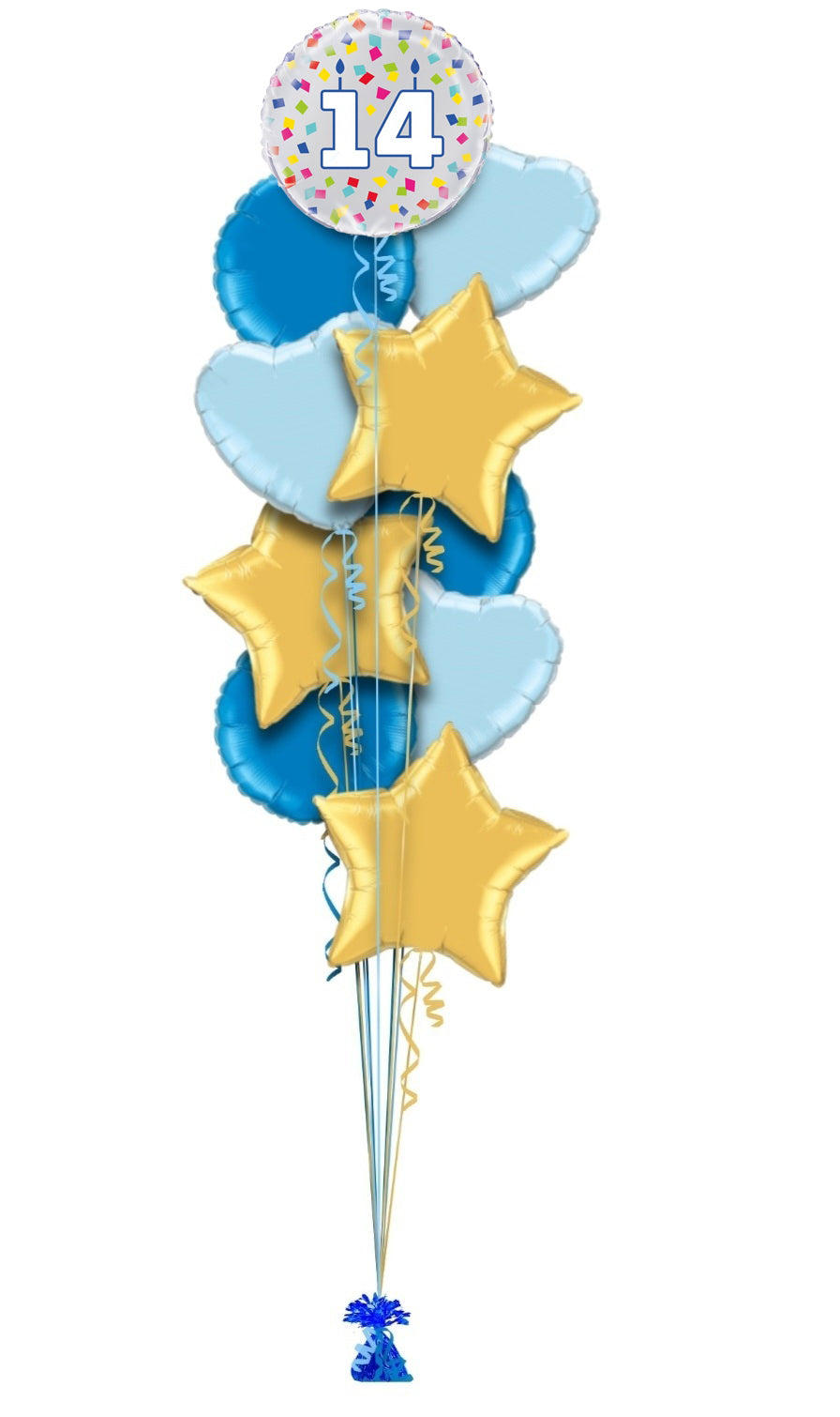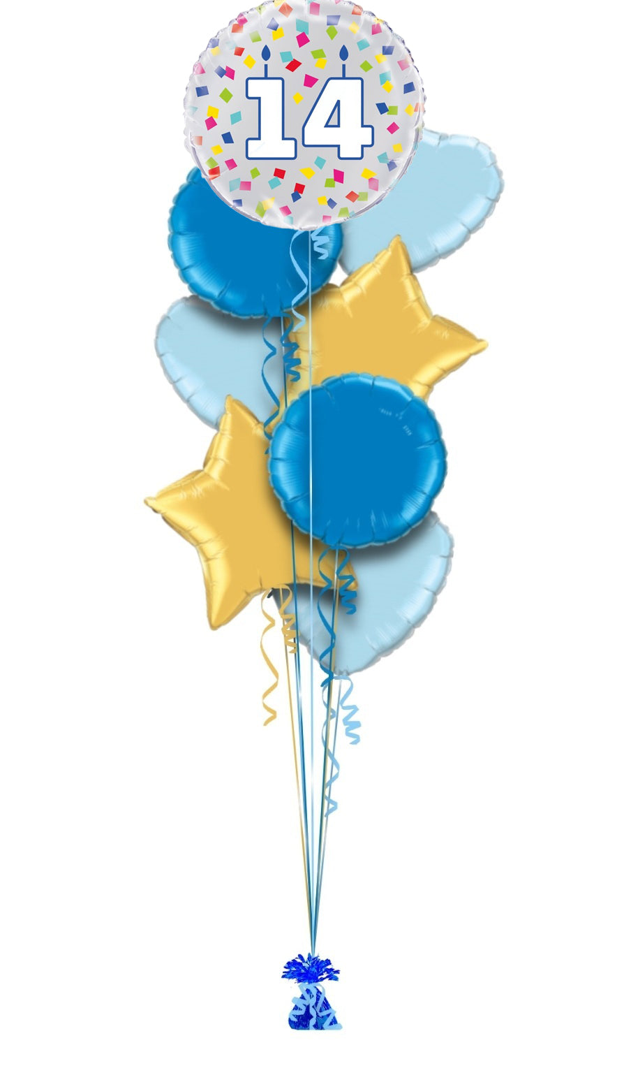 Single balloon or in bunch with extra colour balloons. All of our balloons are inflated with helium, tied down to a weight.