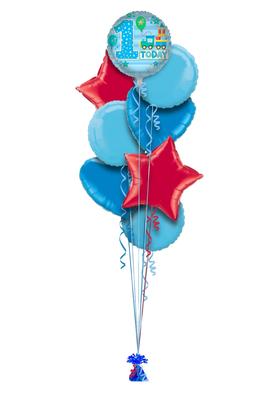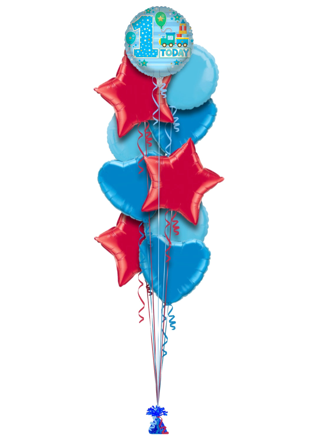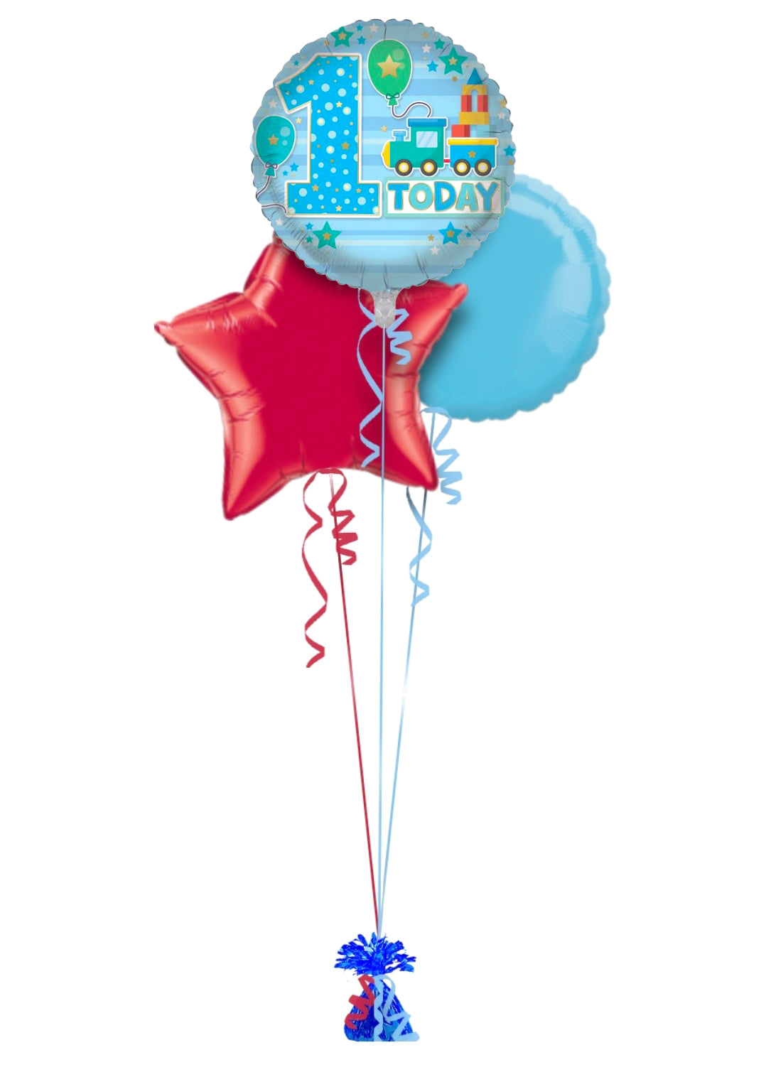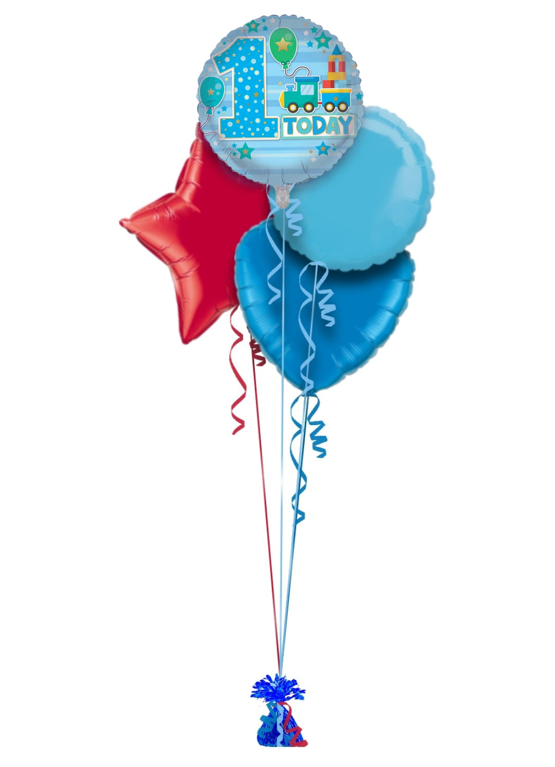 Single balloon or in bunch with extra colour balloons. All of our balloons are inflated with helium, tied down to a weight.