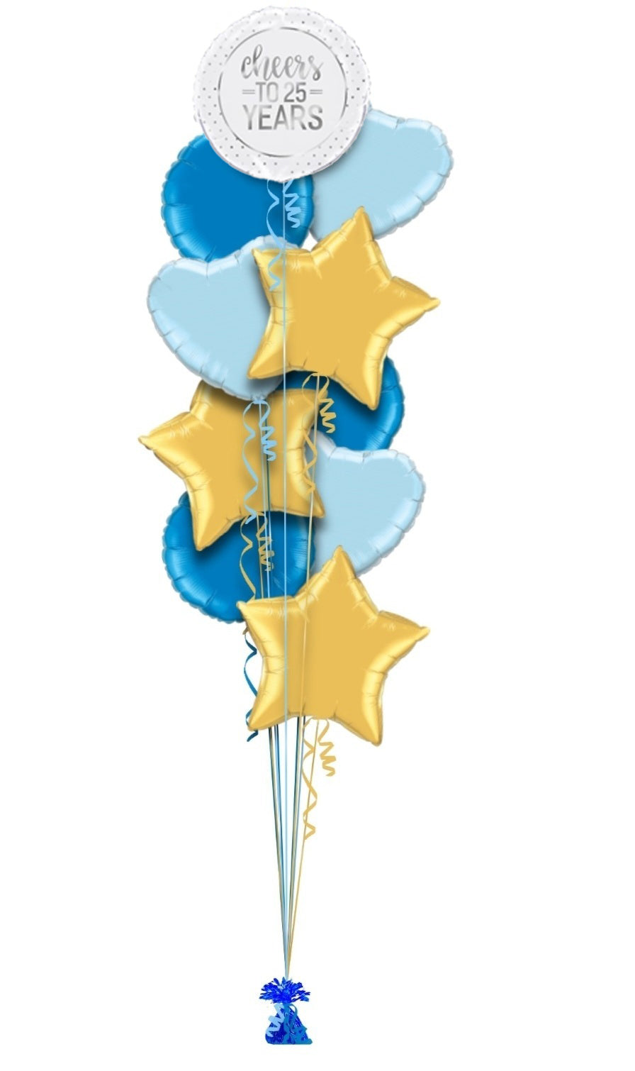 Single balloon or in bunch with extra colour balloons. All of our balloons are inflated with helium, tied down to a weight.