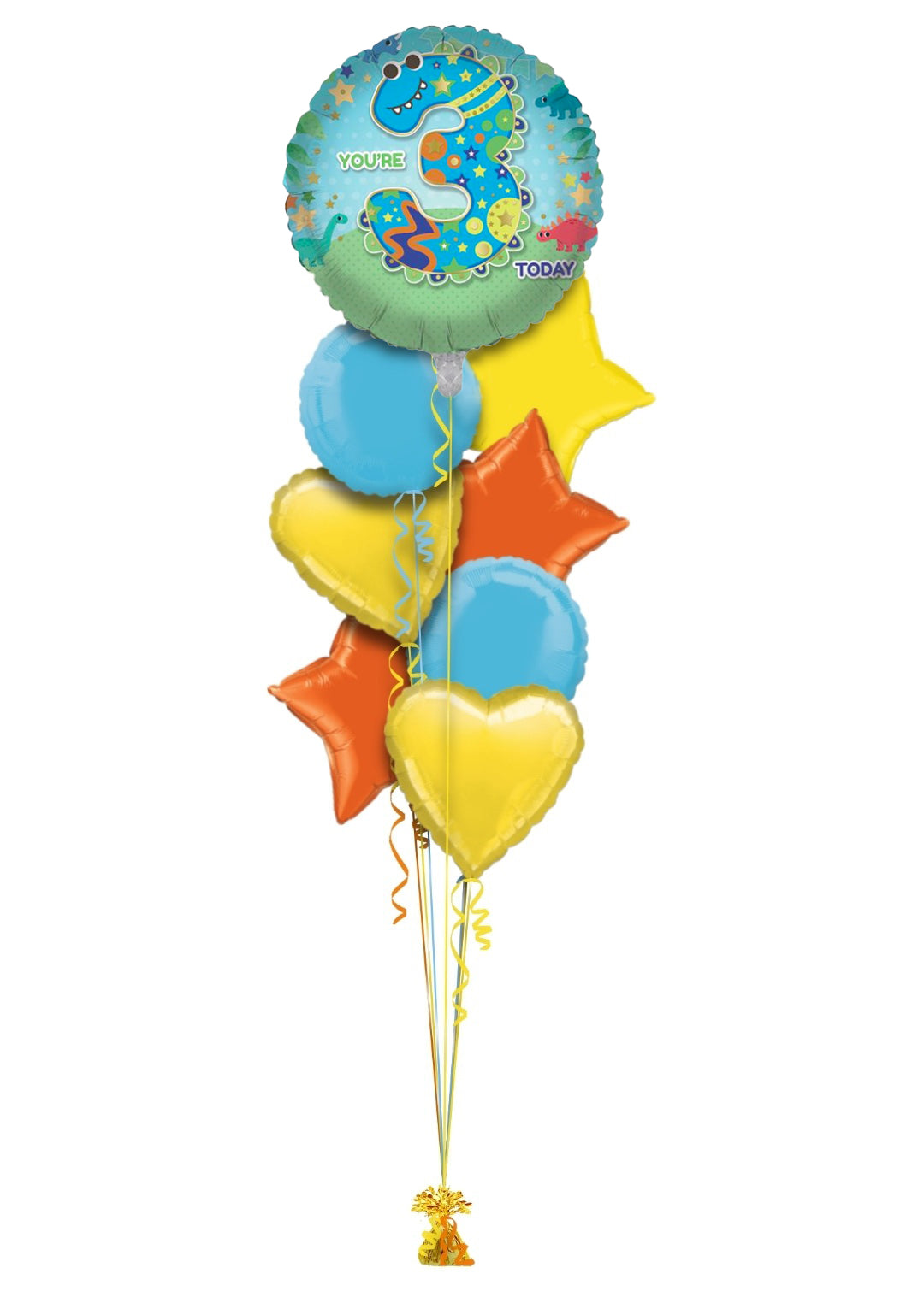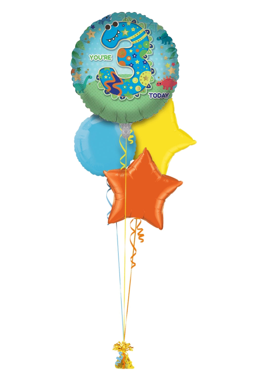 Single balloon or in bunch with extra colour balloons. All of our balloons are inflated with helium, tied down to a weight.