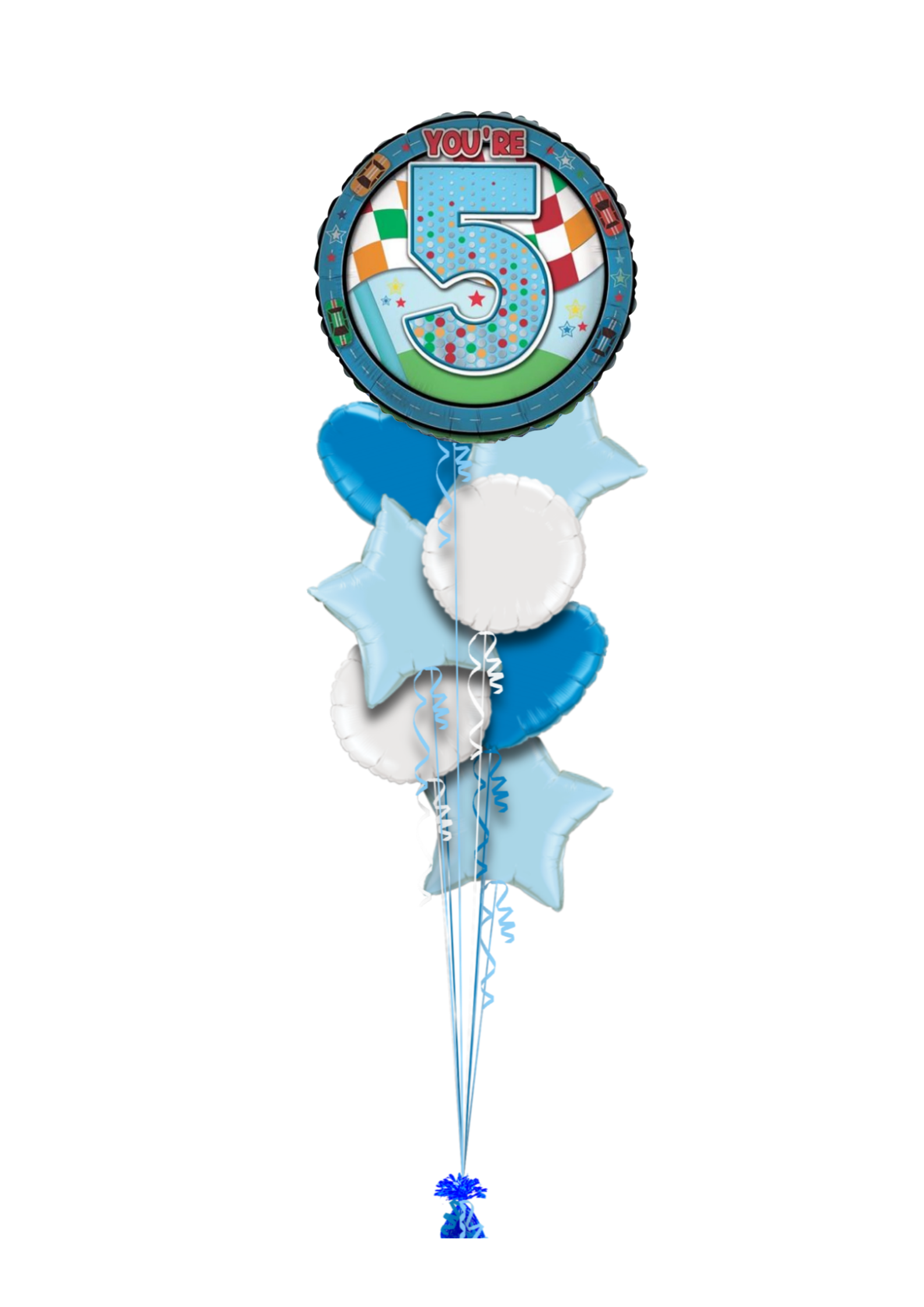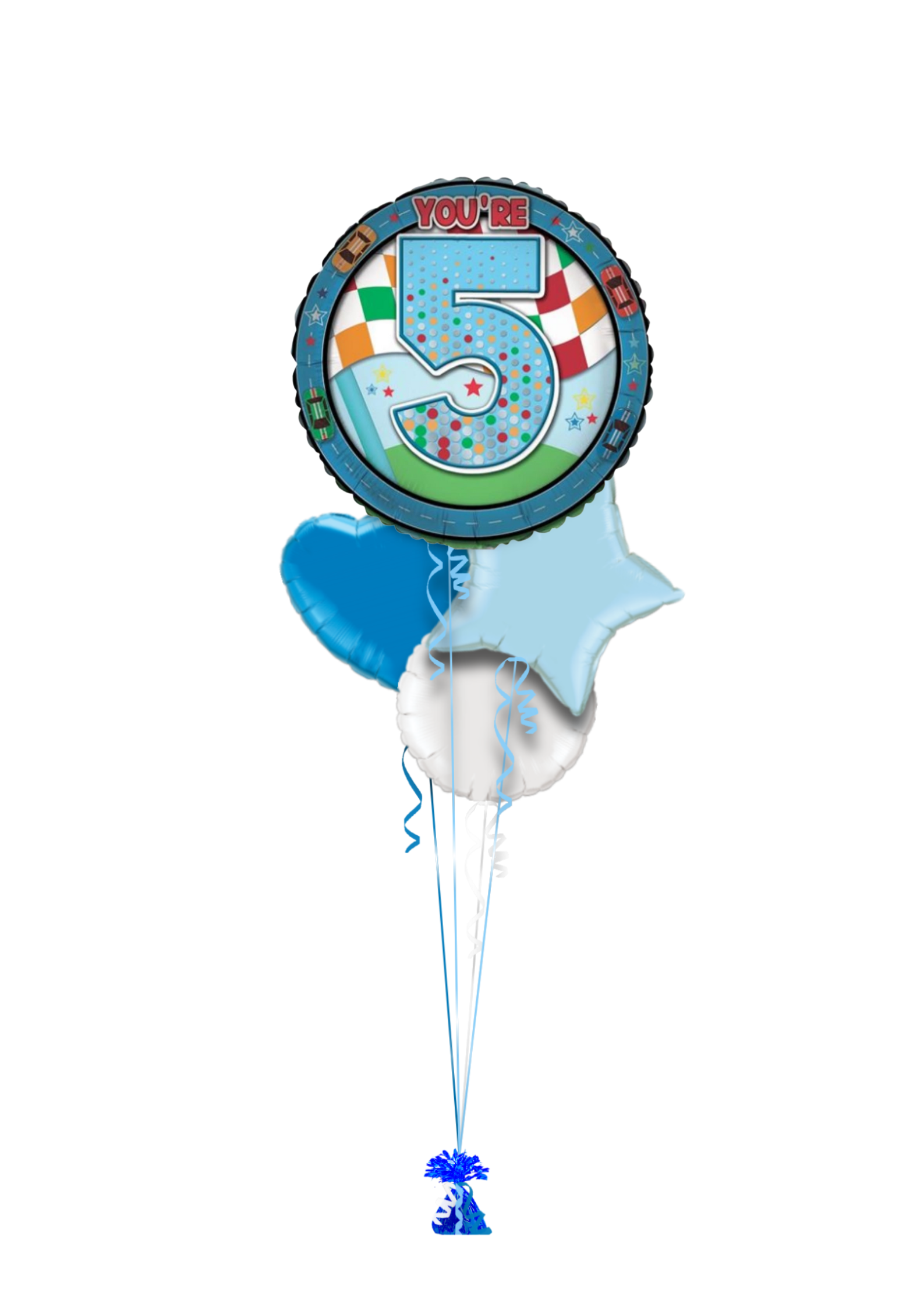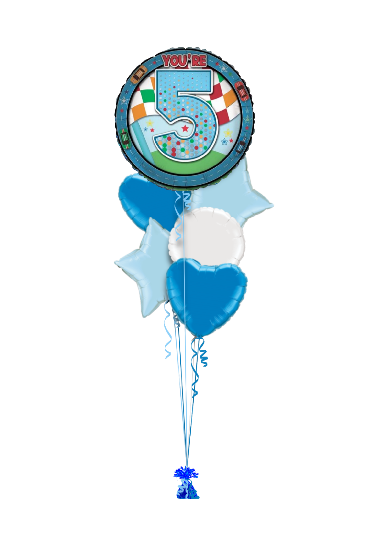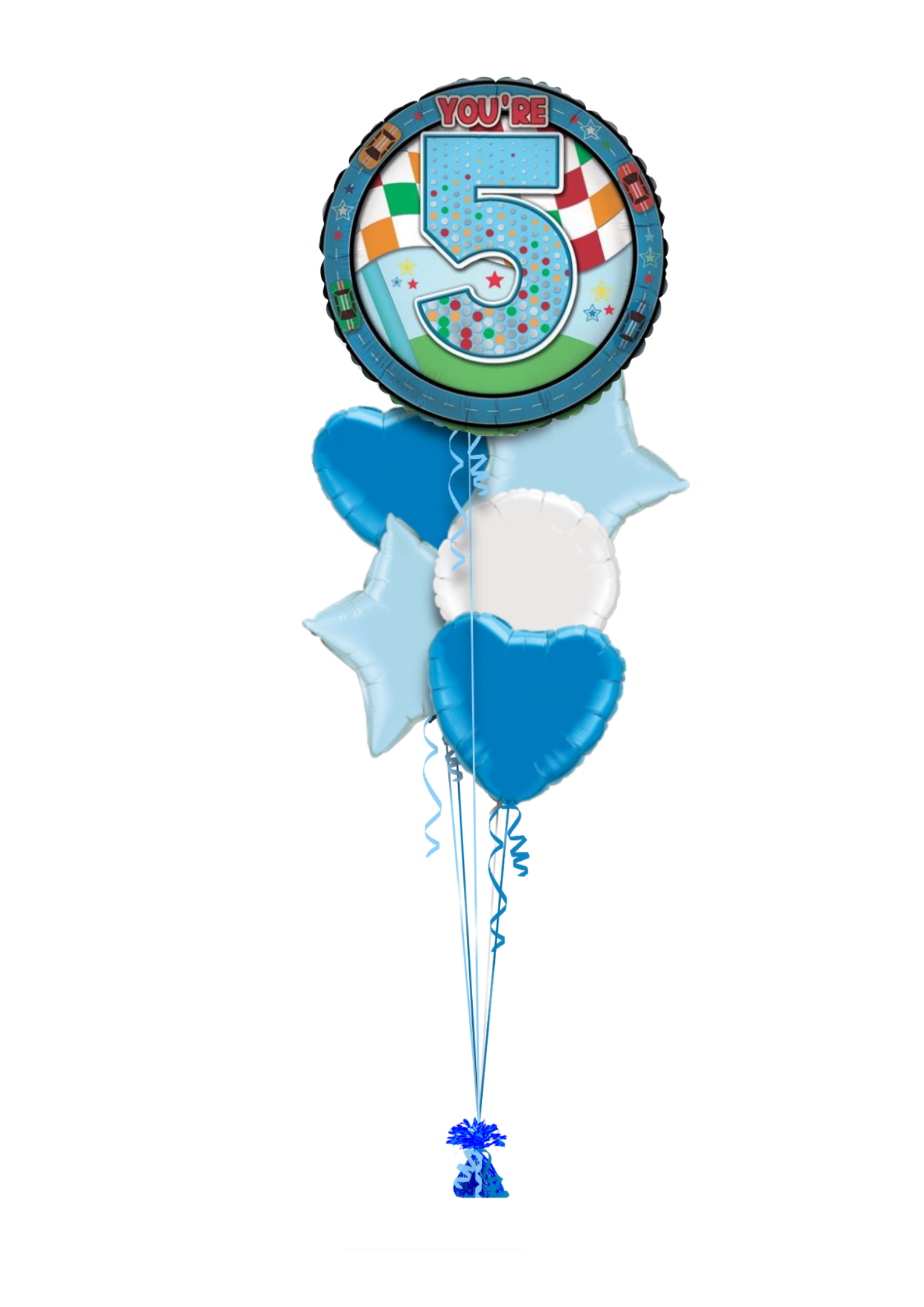 Single balloon or in bunch with extra colour balloons. All of our balloons are inflated with helium, tied down to a weight.