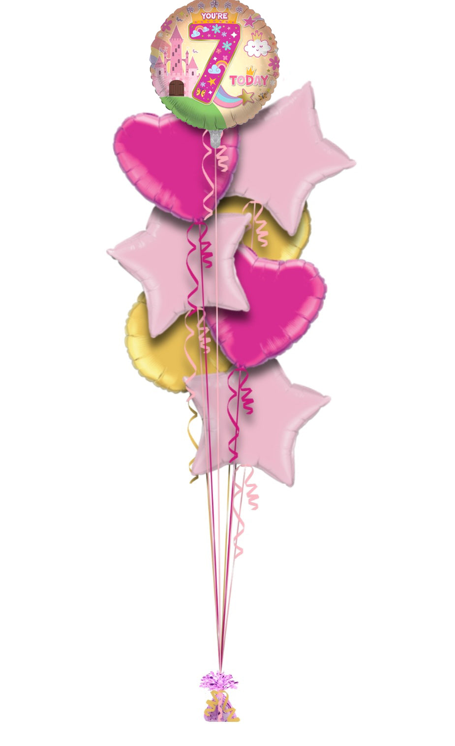 Single balloon or in bunch with extra colour balloons. All of our balloons are inflated with helium, tied down to a weight.