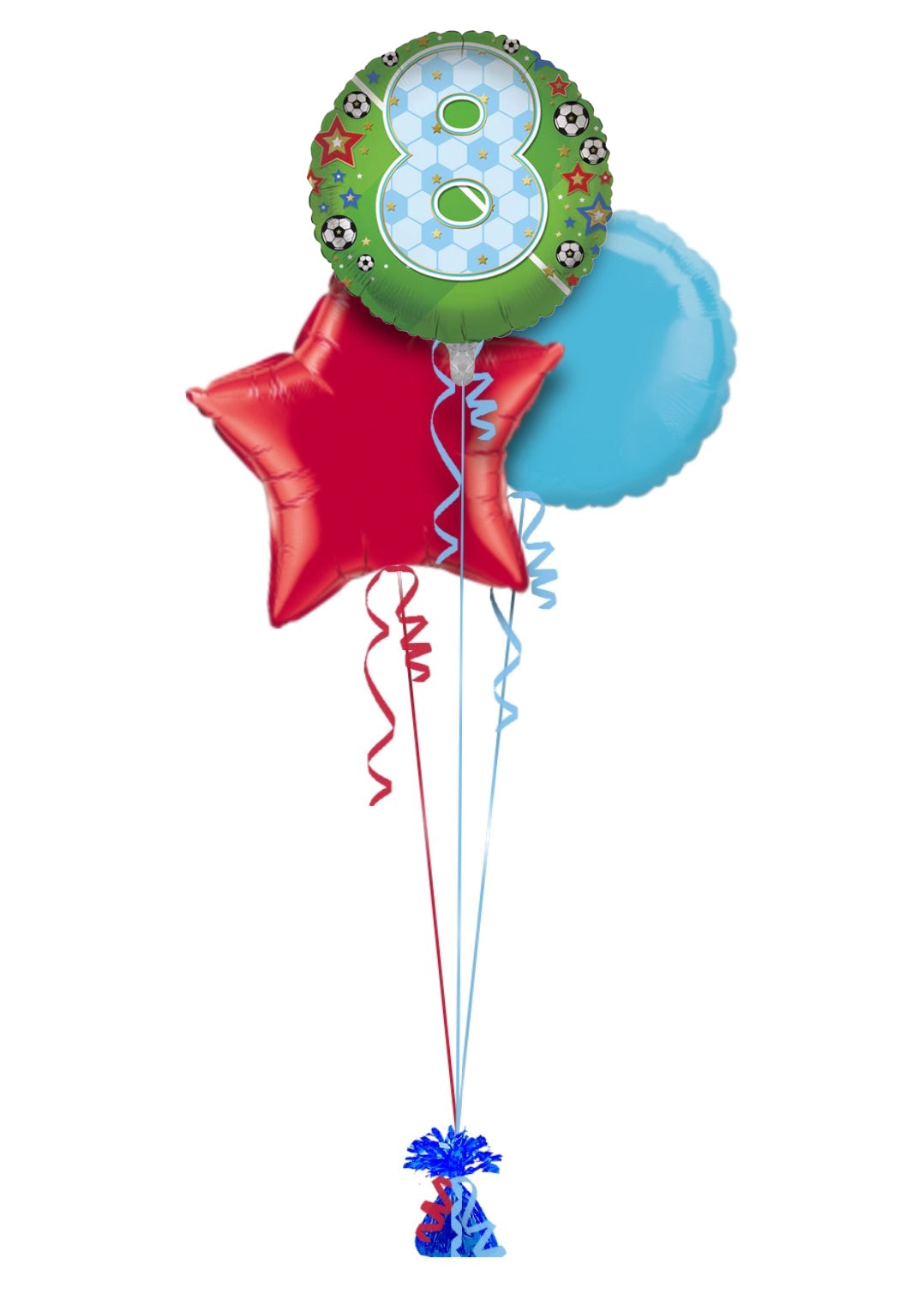Single balloon or in bunch with extra colour balloons. All of our balloons are inflated with helium, tied down to a weight.