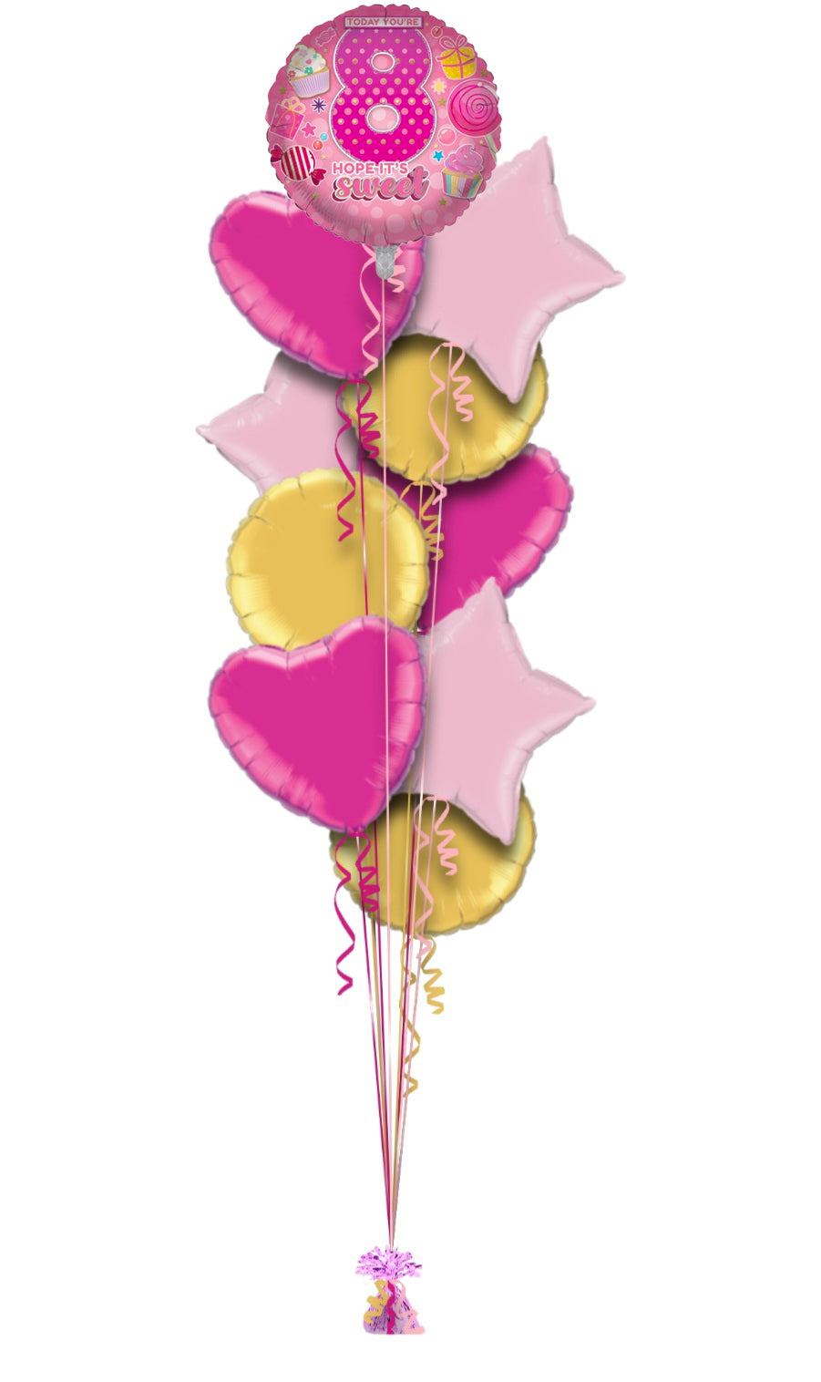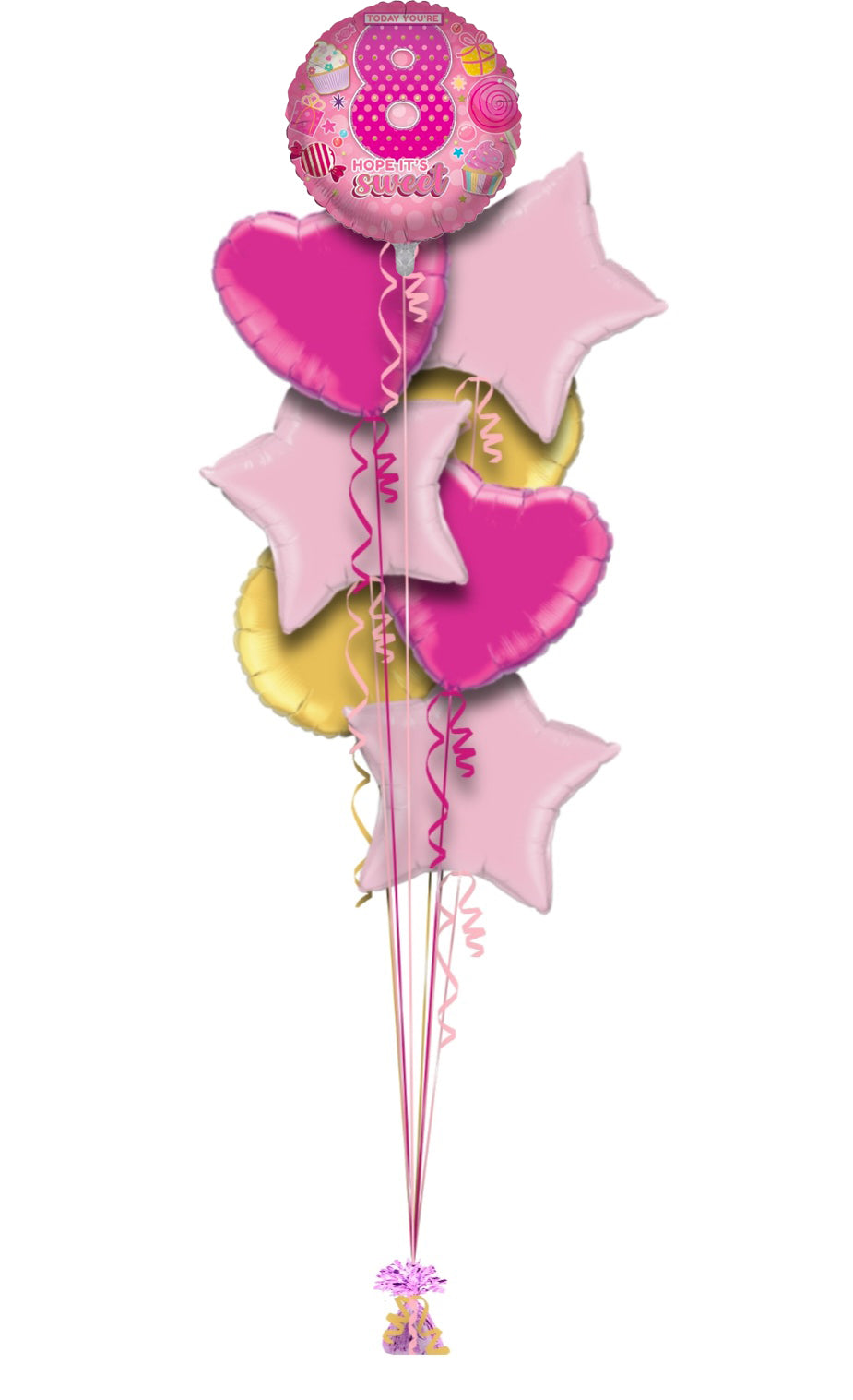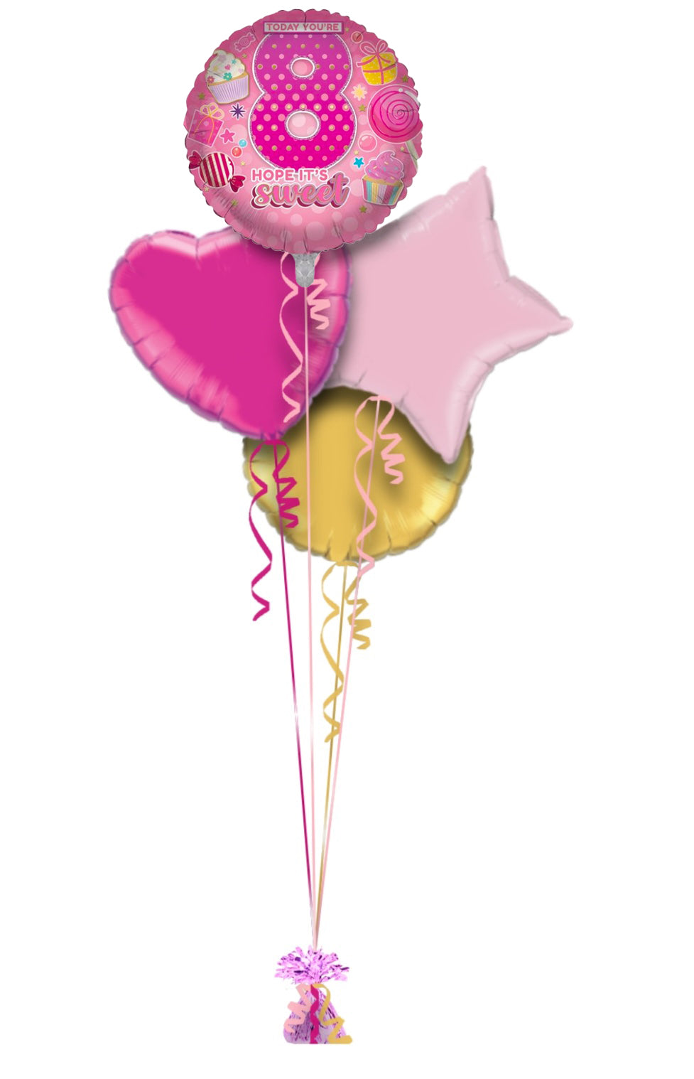 Single balloon or in bunch with extra colour balloons. All of our balloons are inflated with helium, tied down to a weight.