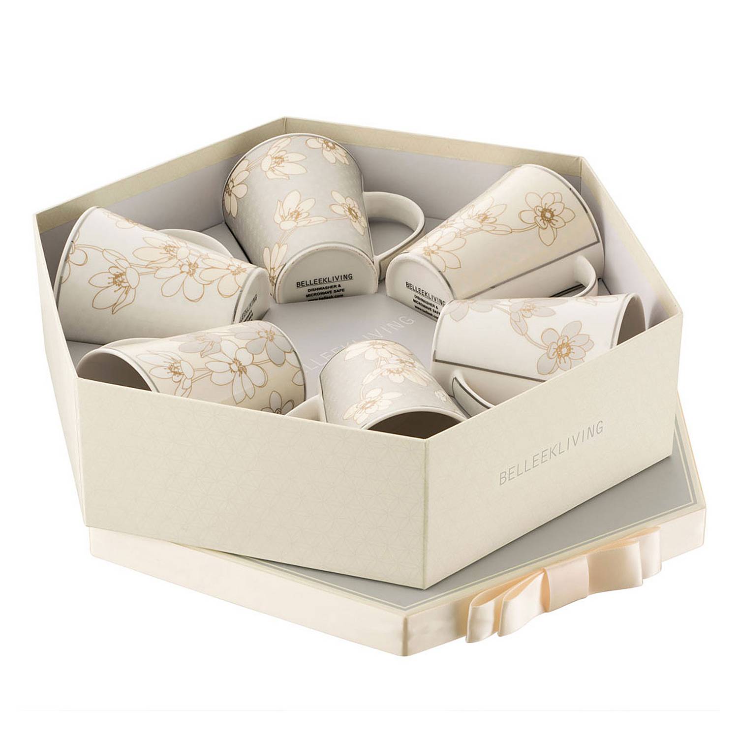 Nuetral, Elegant and Classy are the words used to describe these Belleek Living Bay Flower Mugs.