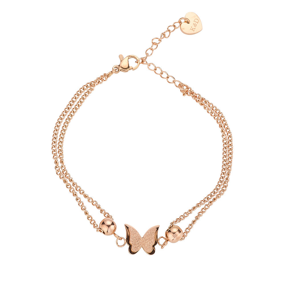 Elegant rose gold bracelet with butterfly charm centre piece.  Lobster claw fastening.