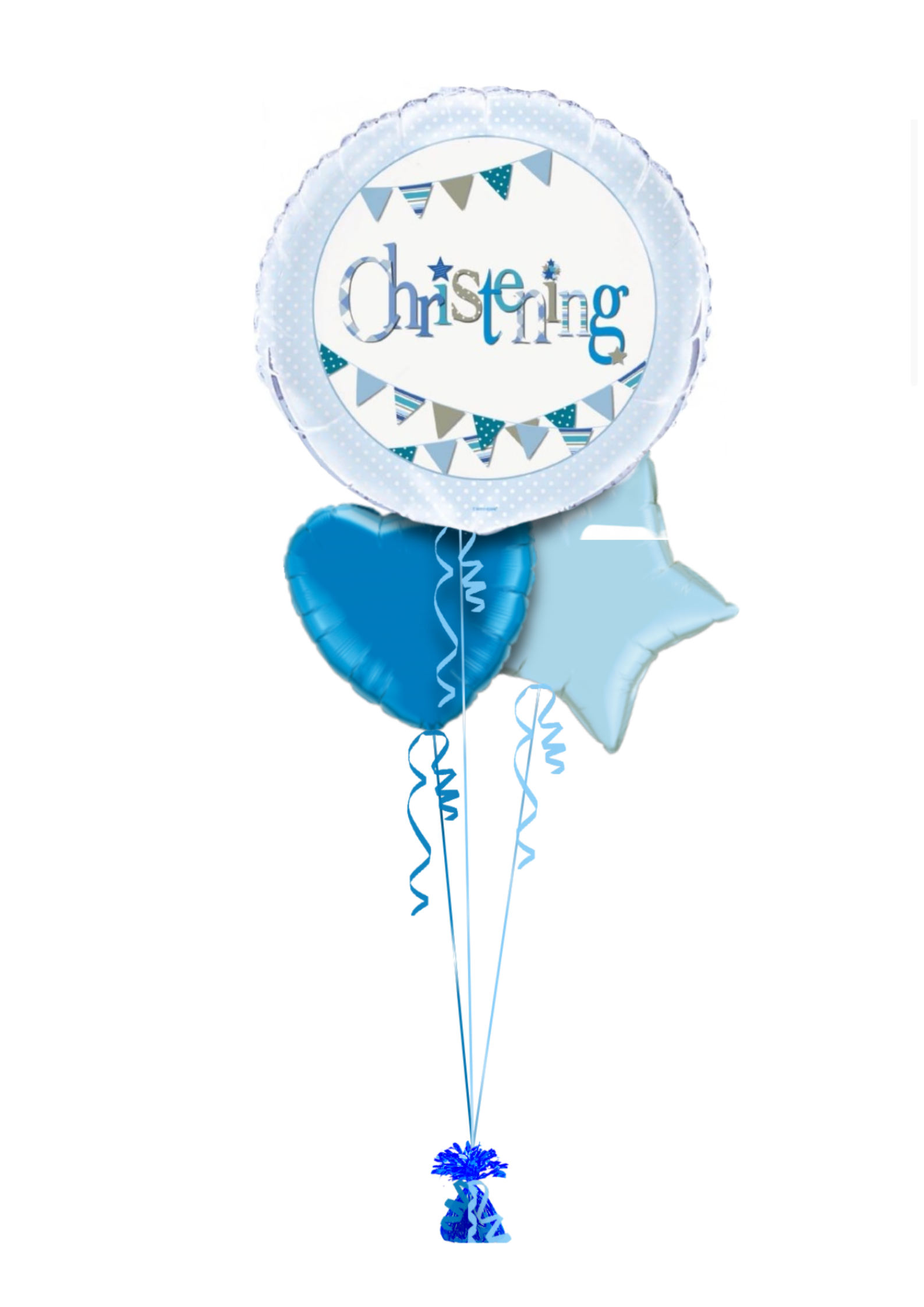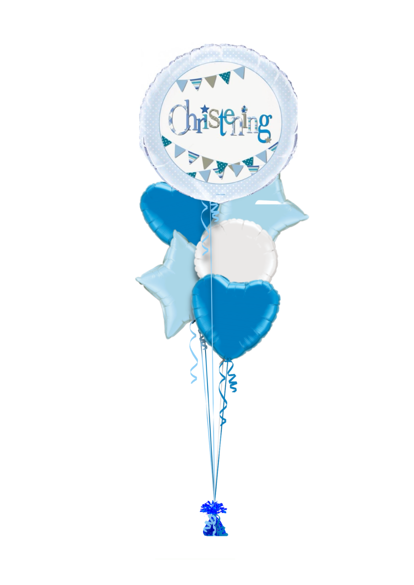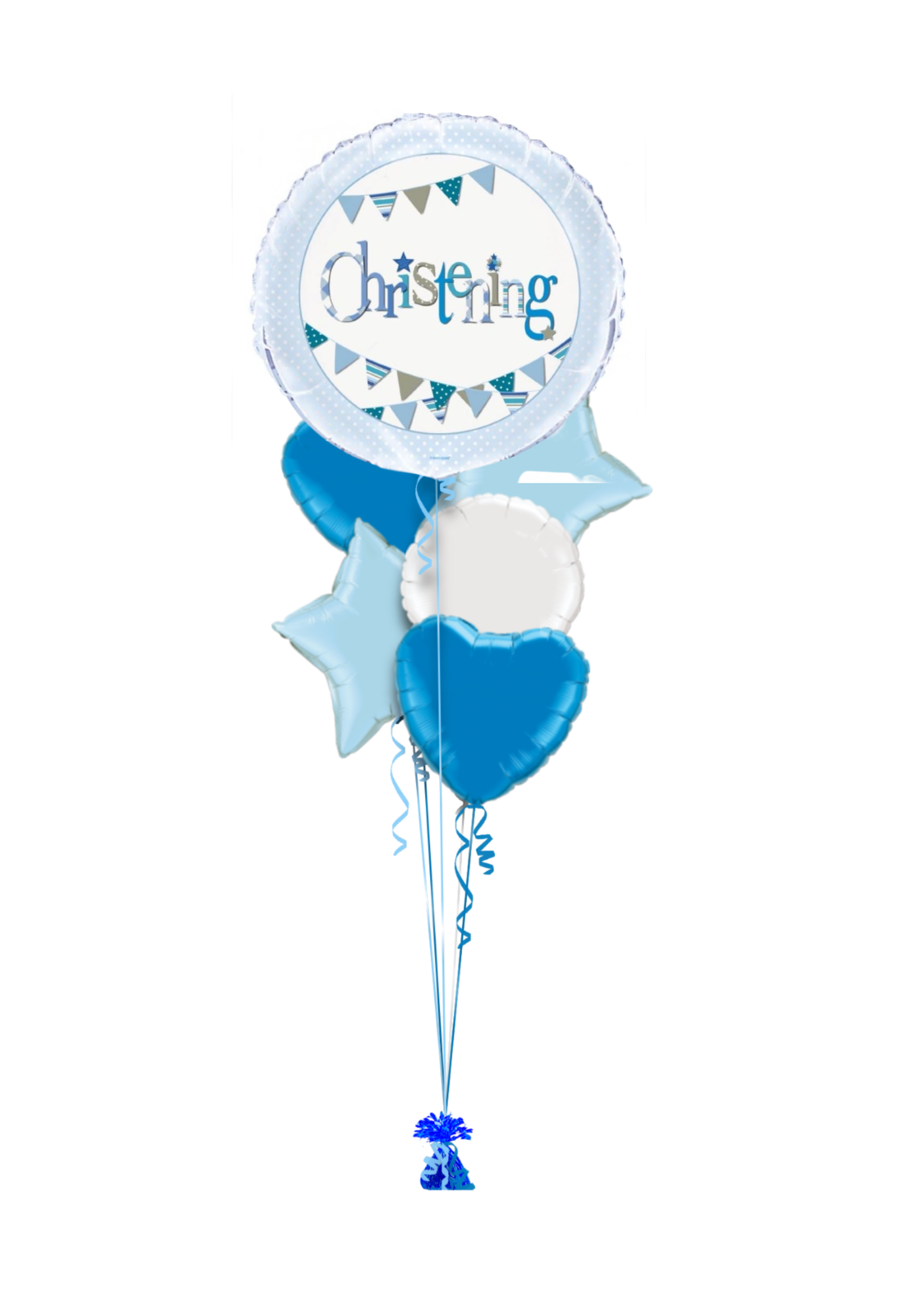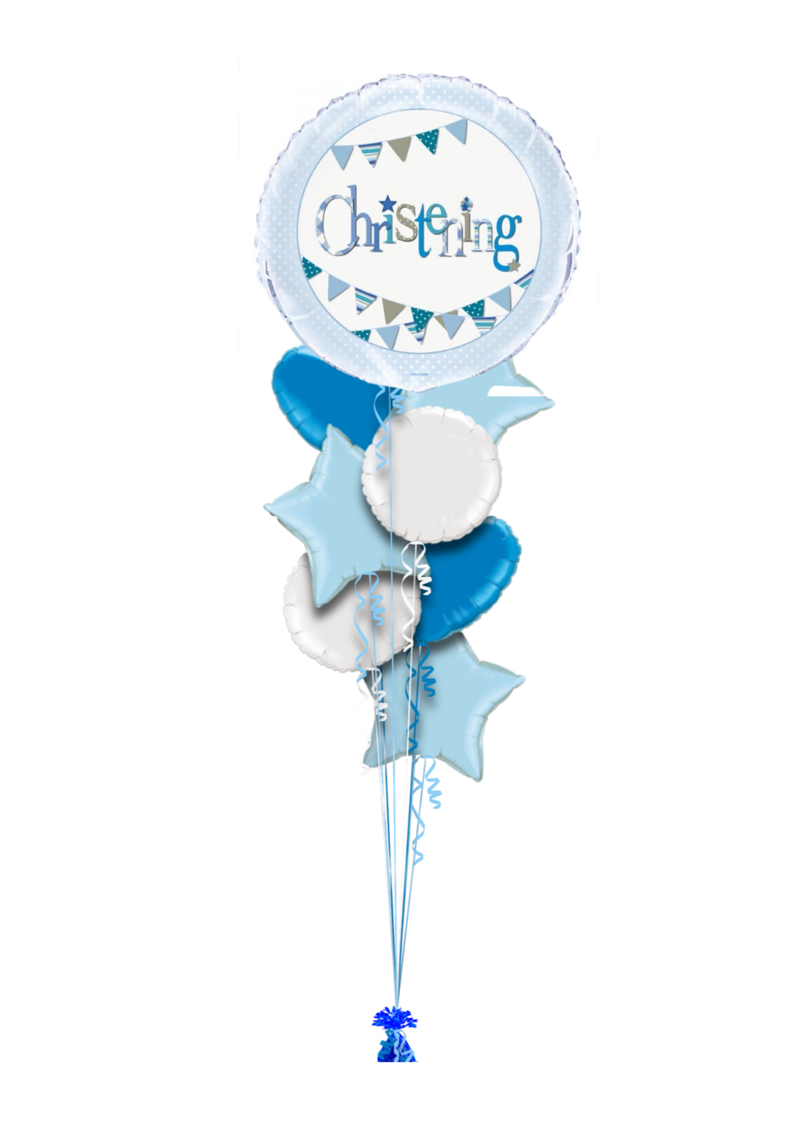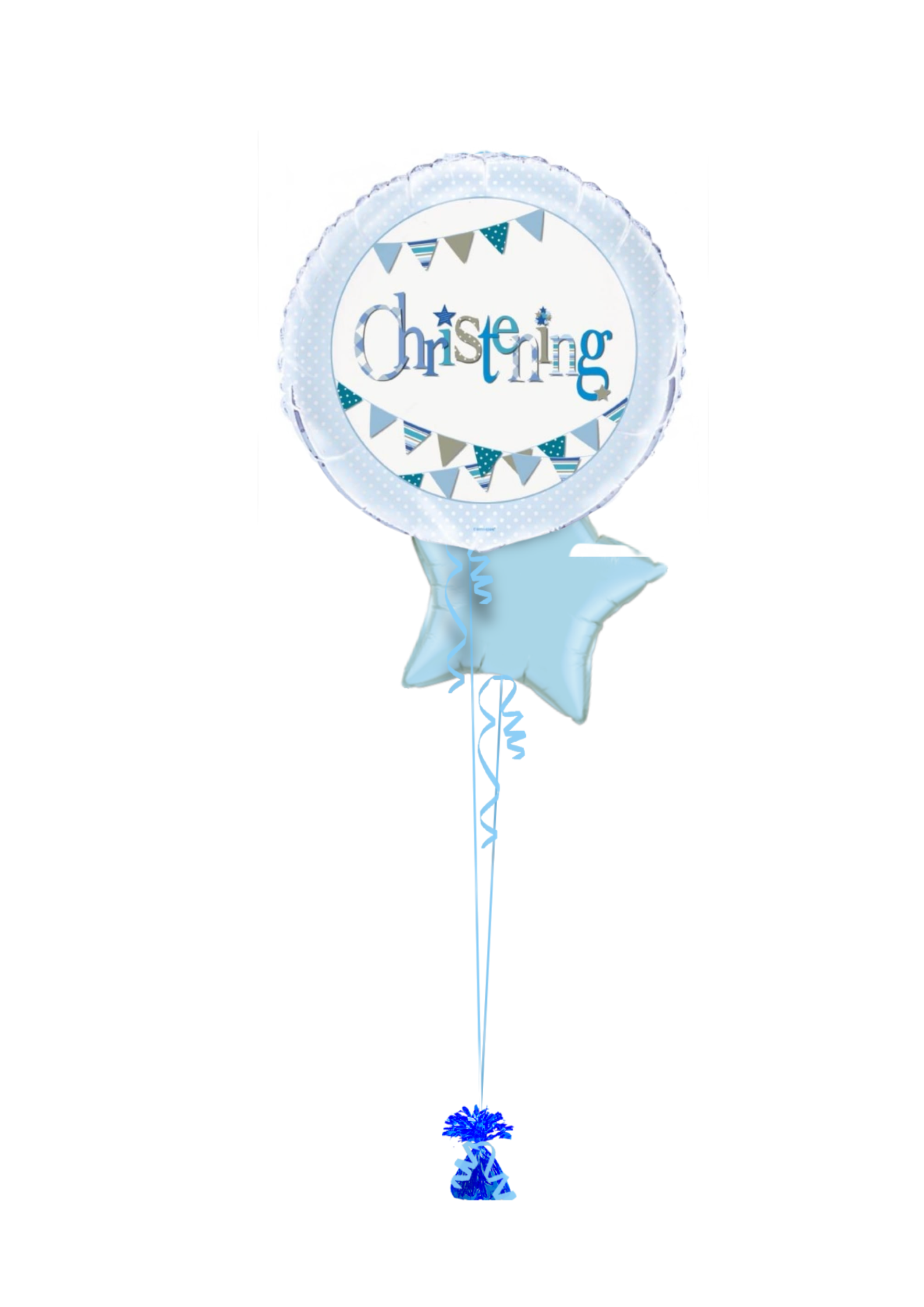Celebrate a little oneβs special day with this adorable blue Christening balloon set! Featuring a playful banner-style design, heart, and star-shaped foil balloons, itβs the perfect way to decorate or gift for a joyful occasion. Comes complete with curly ribbons and a matching weight. β¨πΌ