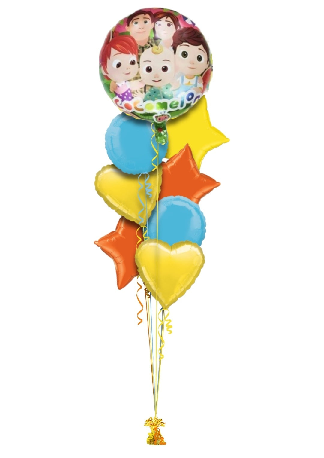Single balloon or in bunch with extra colour balloons. All of our balloons are inflated with helium, tied down to a weight.