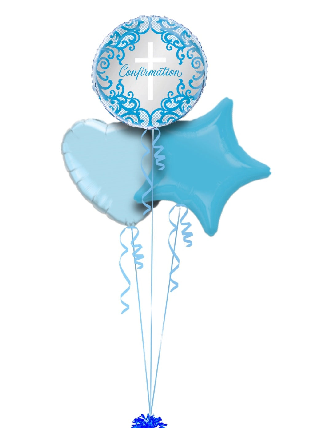 Celebrate a special Confirmation with this elegant blue and silver foil balloon. Featuring a white cross, delicate patterns, and "Confirmation" in script, it's a perfect decoration for the occasion. Comes with a blue ribbon and matching weight. šāØ