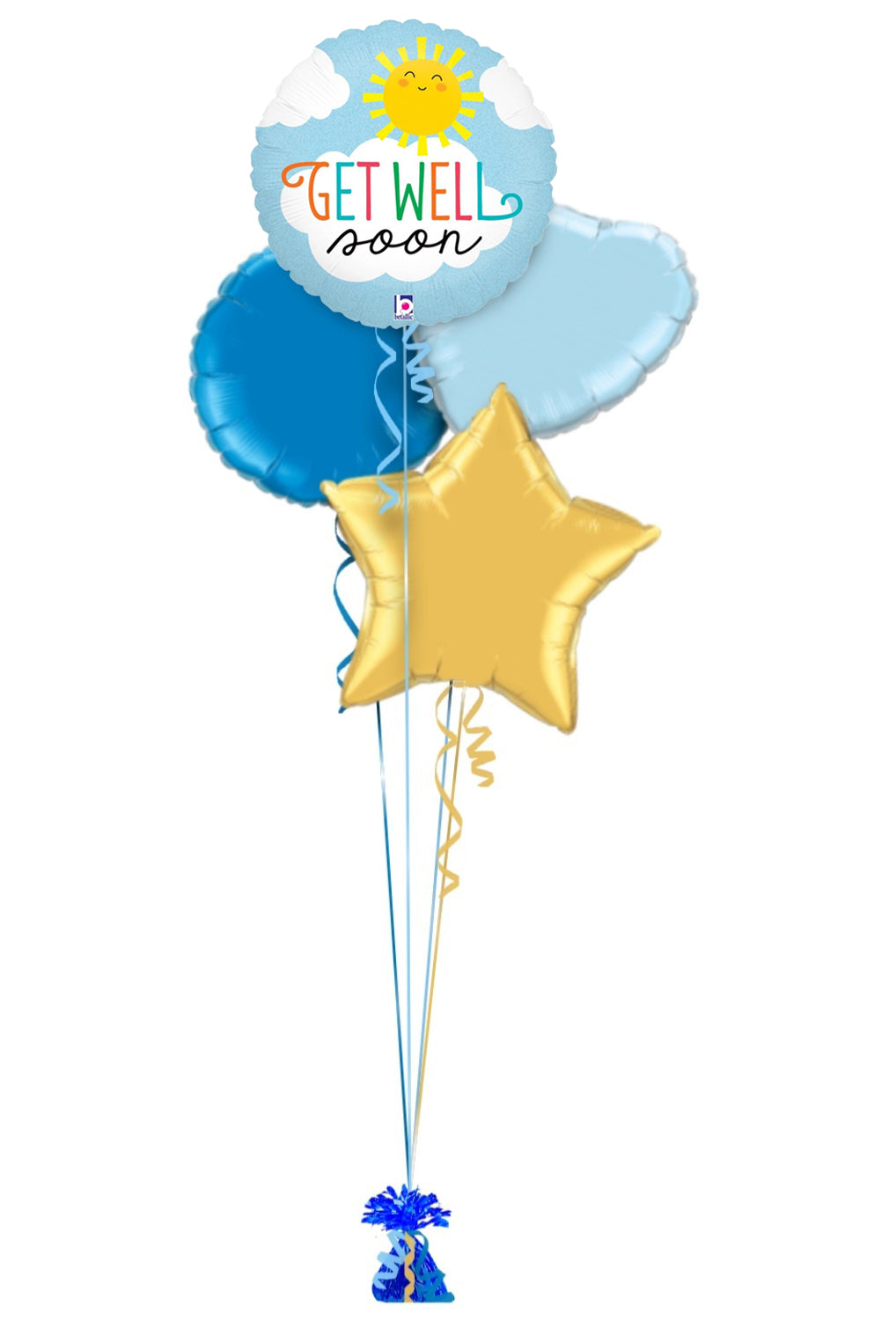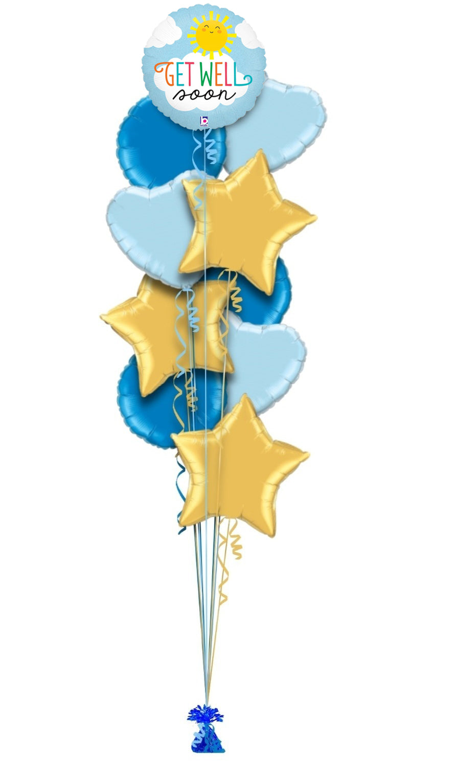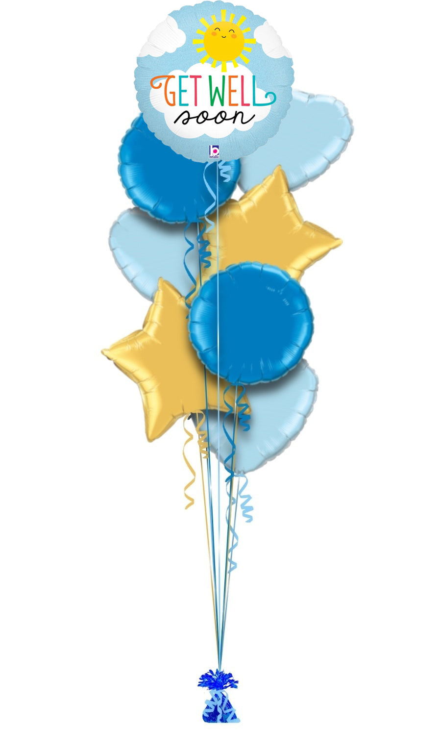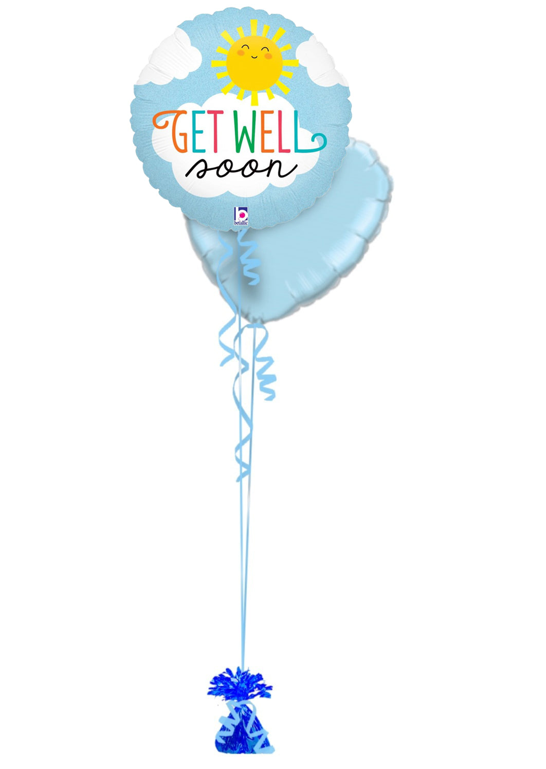 Single balloon or in bunch with extra colour balloons. All of our balloons are inflated with helium, tied down to a weight.