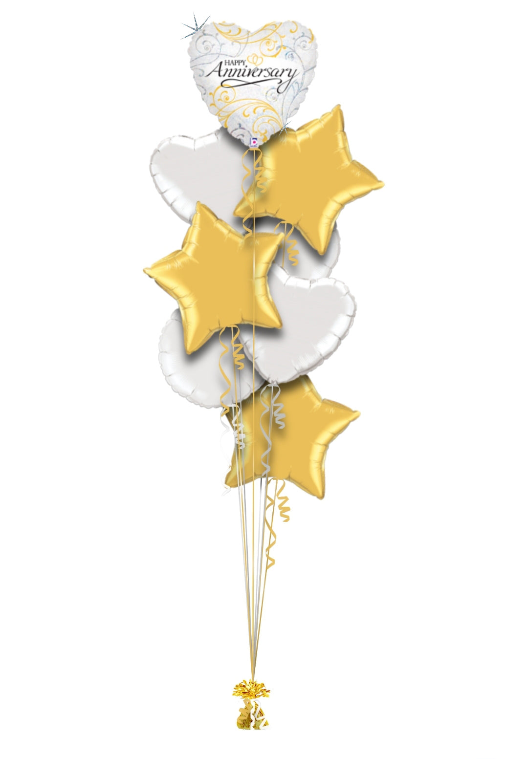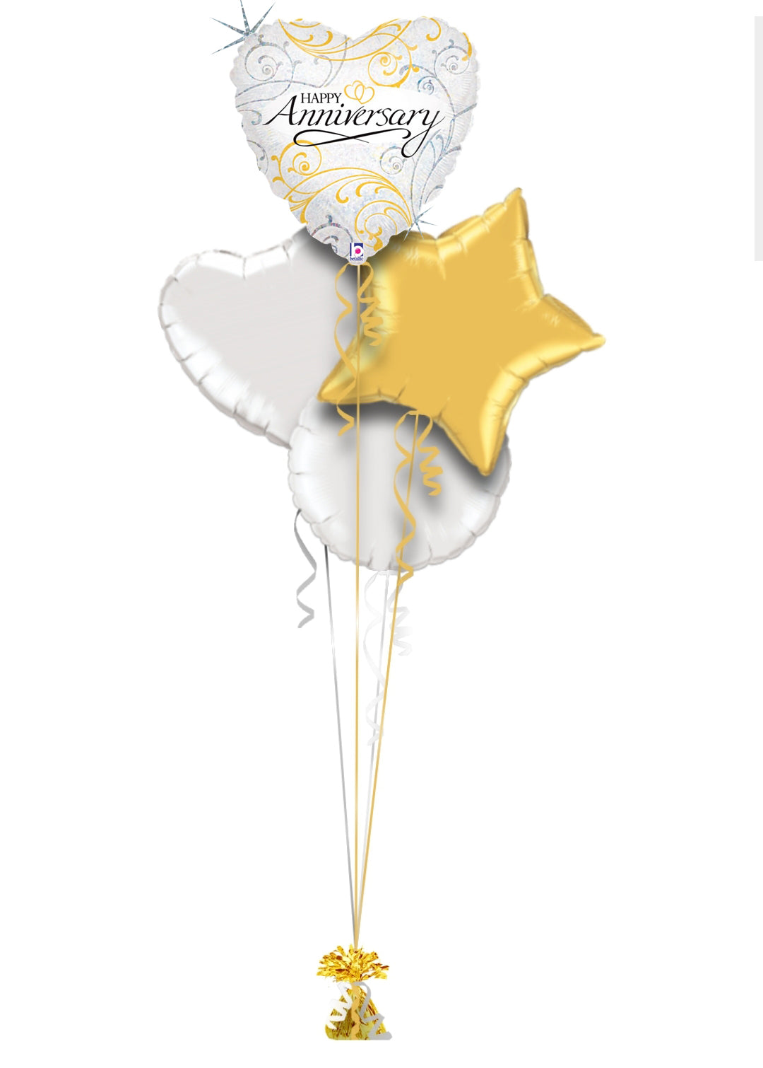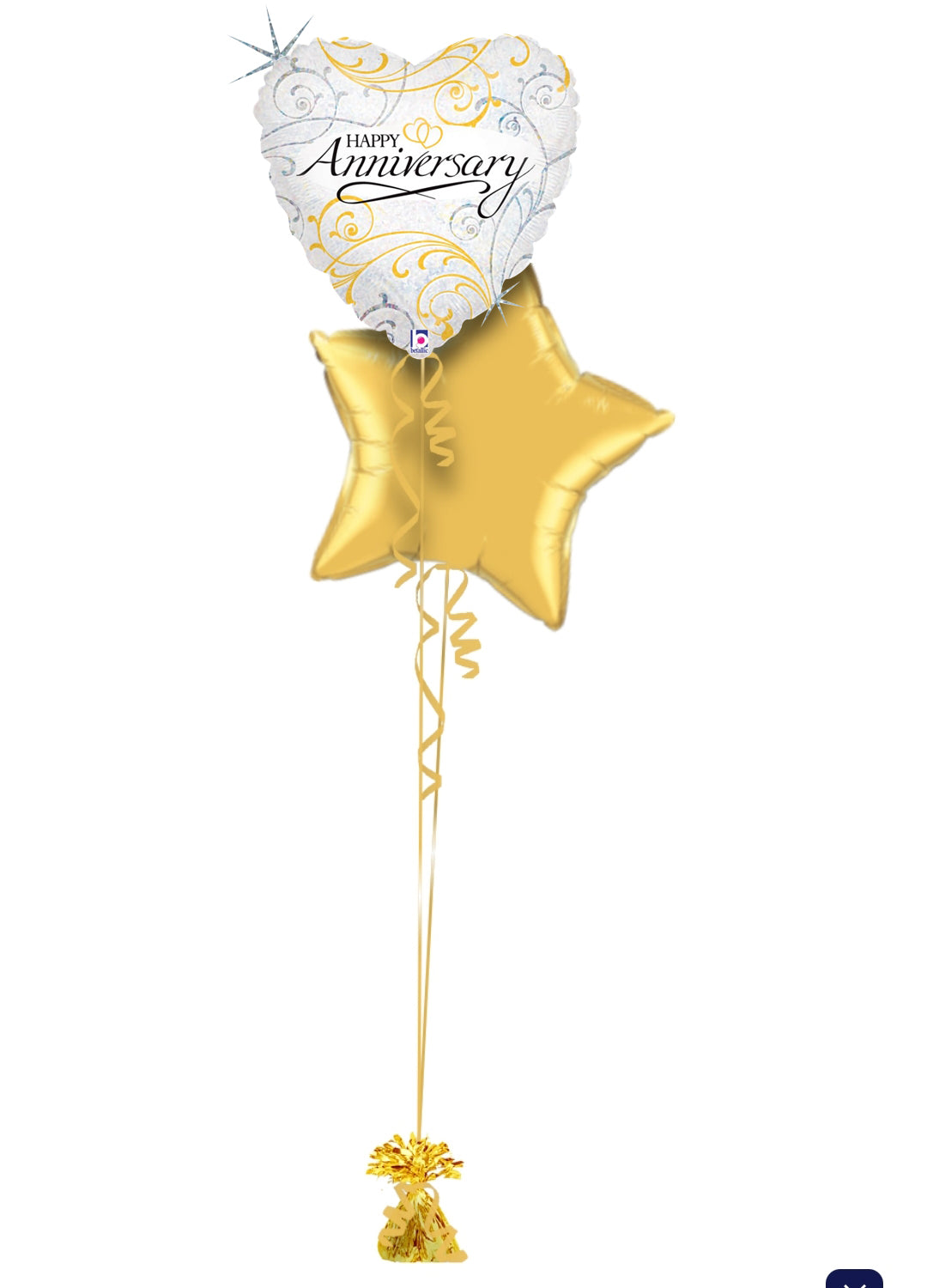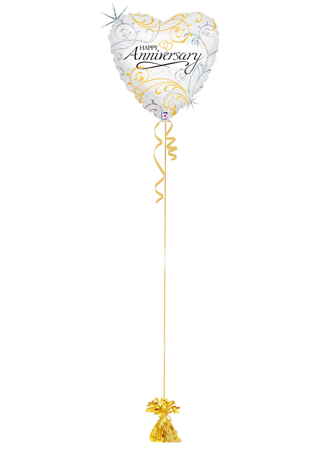 Mark a special celebration with this elegant balloon set! Featuring a heart-shaped balloon with gold swirls and a matching gold star, finished with curly ribbon and a gold weight. Perfect for adding a touch of love and sparkle to the day! šš