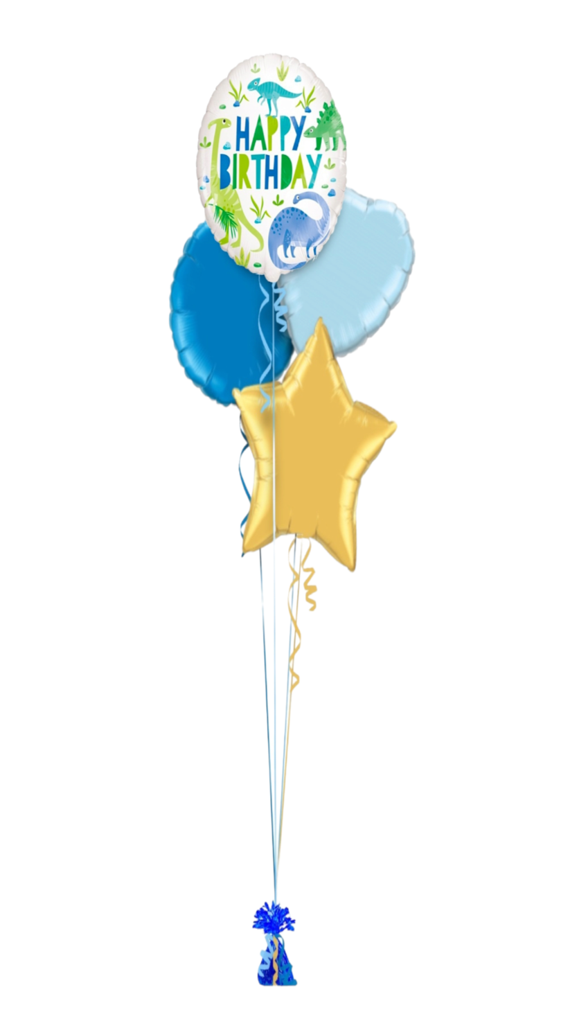 Single balloon or in bunch with extra colour balloons. All of our balloons are inflated with helium, tied down to a weight.