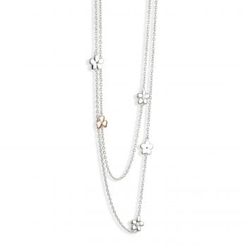Sterling silver necklet, crystal set wild Meadow flowers & rose toned shamrock bud scattered on a delicate layered double chain
