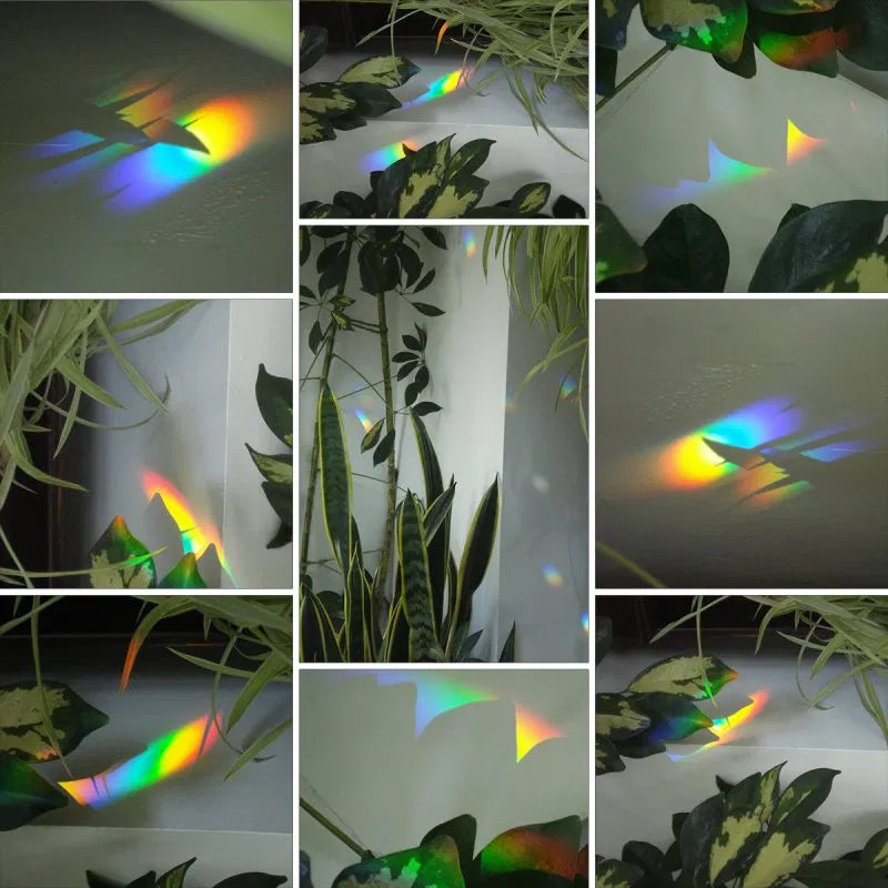 When hung in a window the sunlight catches the crystal, which acts as a prism and disperses rainbows all around your room.